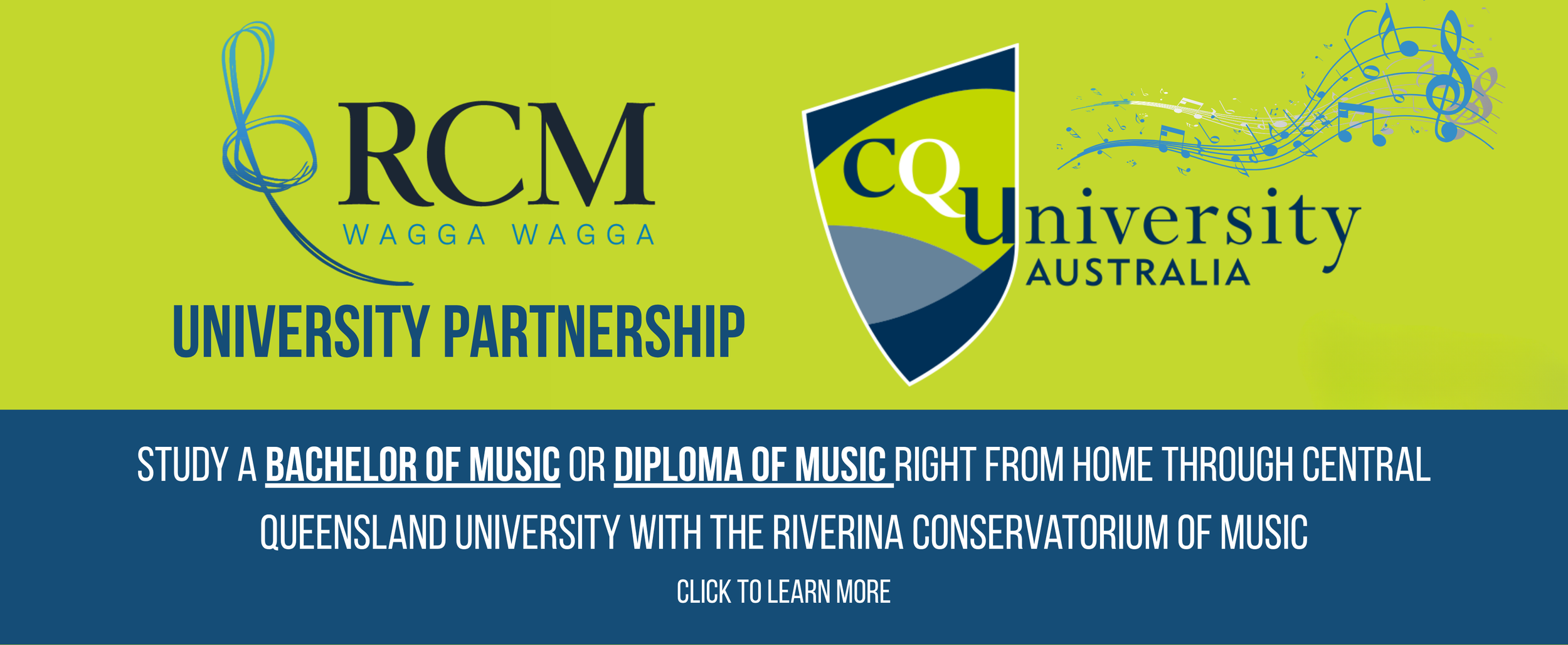 For school leavers interested in furthering their musical education, the RCM has partnered with the Central Queensland University to offer a Diploma of Music and Bachelor of Music. You will be supported throughout your study and undertake one-on-one instrumental tuition with highly qualified regional conservatorium staff in classical, jazz or popular music. Click the banner below to find out more!